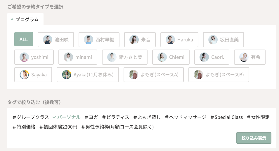 検索の際は、タグ「パーソナル」を選択の上、絞り込み検索をすると便利です。