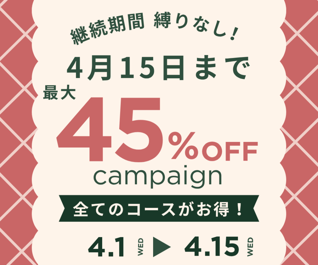 春の入会キャンペーン(縛りなし・最大45%OFF)