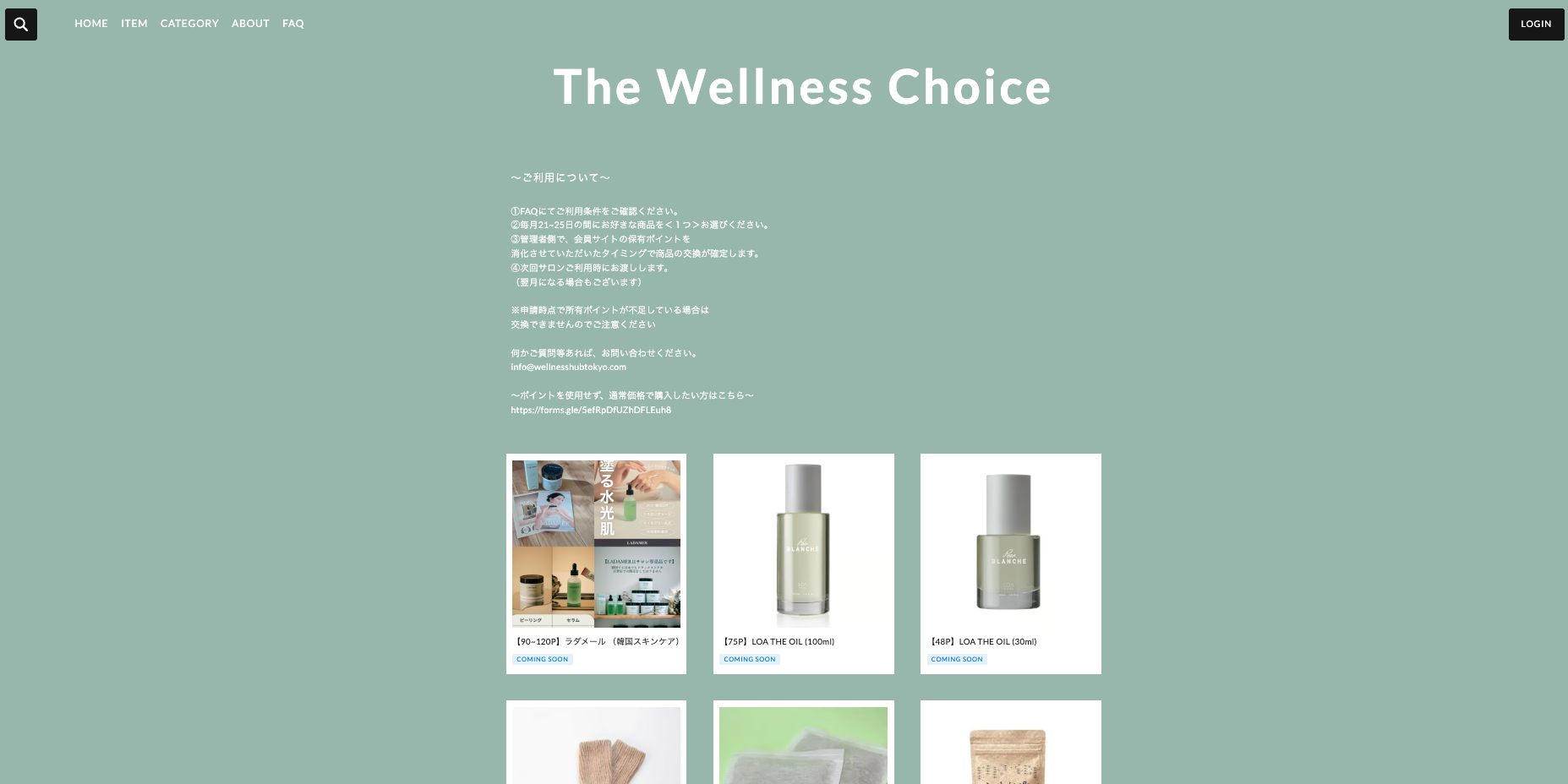 Wellness Hub TOKYO月額コース会員様限定のShopです。