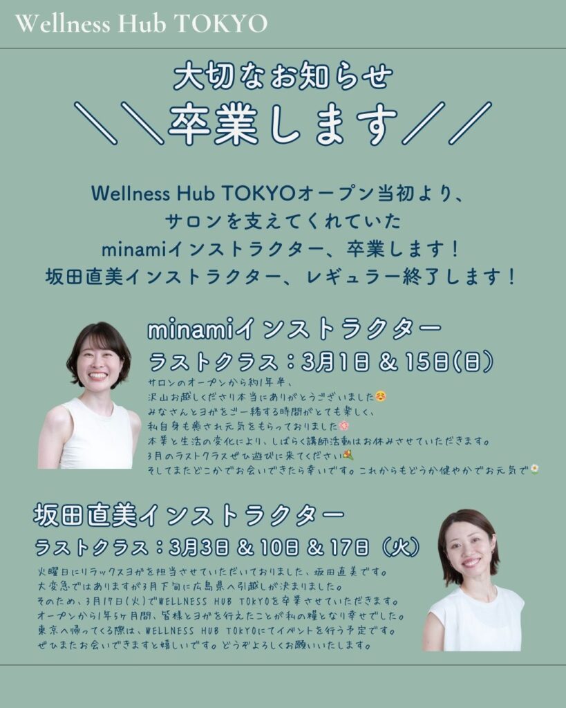新しい春のWellness Hub TOKYOも、どうぞよろしくお願いいたします。